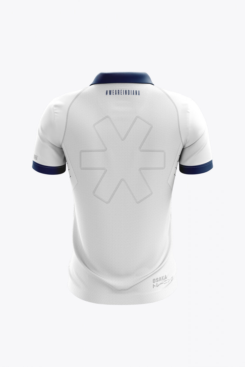 Represent Field Hockey Club Indiana with pride in this premium polo jersey, featuring the iconic Osaka star logo in reflective silver on the chest and additional silver branding on the back hem and sleeve cuffs. Subtle Osaka details on the sleeves and an embossed logo on the back add a sophisticated touch, while contoured panels enhance your athletic physique. Combining top-tier materials with meticulous craftsmanship, this jersey ensures you perform at your best while embodying the spirit of Indiana.